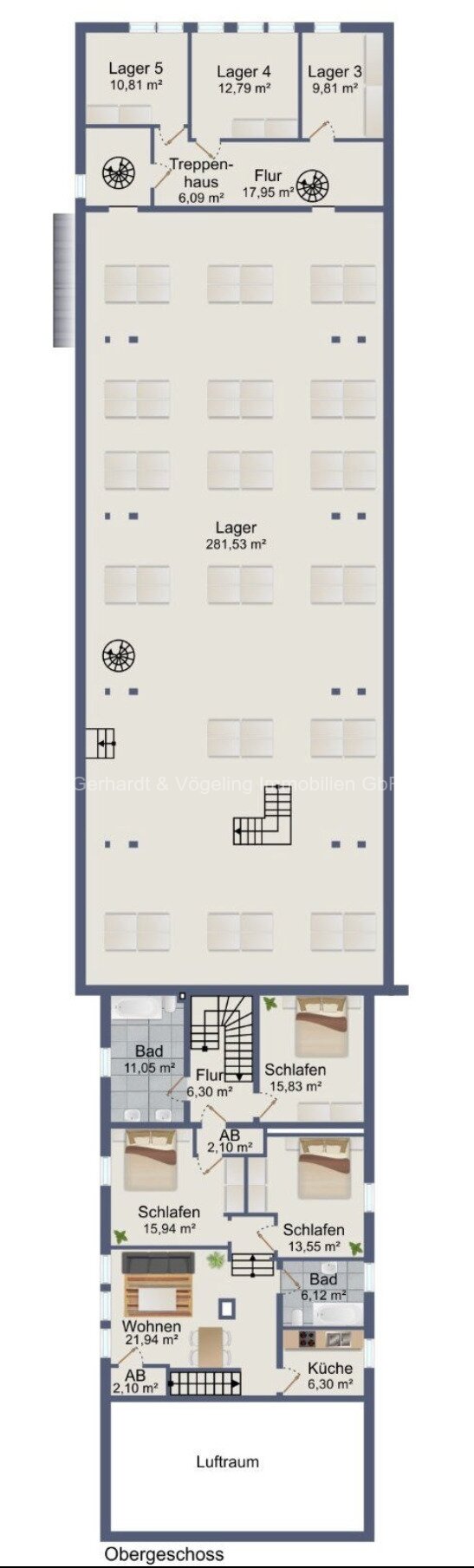 Zusätzliche Fläche: ca. 305 m² (dritte Einheit möglich / Aufteilung flexibel)