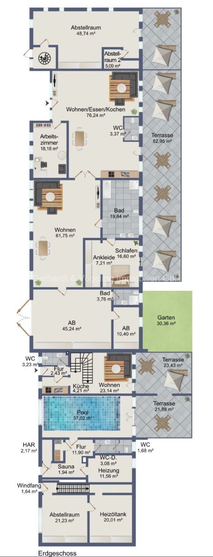 Geplante zusätzliche Wohnfläche laut Architektenplanung: ca. 540 m². Baugenehmigung liegt vor.